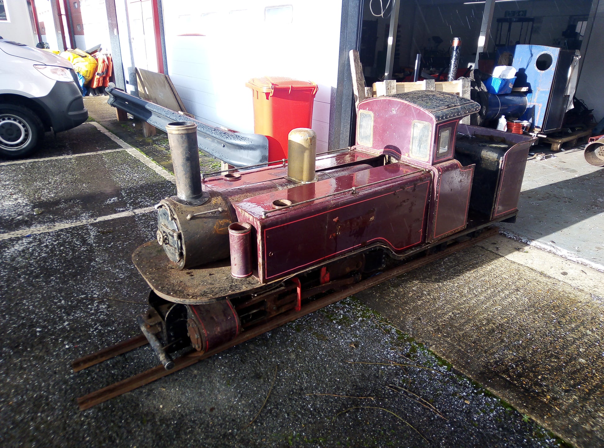 An 0-4-4T steam locomotive, modelled on the Single Fairlie type locomotive 'Taliesin' which lives on the Ffestiniog Railway in North Wales. Built by R. Plummer and P. Dugdale for the Orchard Farm Lakeside Railway in Yorkshire around 2007. When built she had a flash steam boiler, with which trial runs proved unsuccessful. She was then sent to Great Northern Steam Ltd to be rebuilt with a conventional boiler; unfortunately this work was unfinished when GNS went into liquidation.