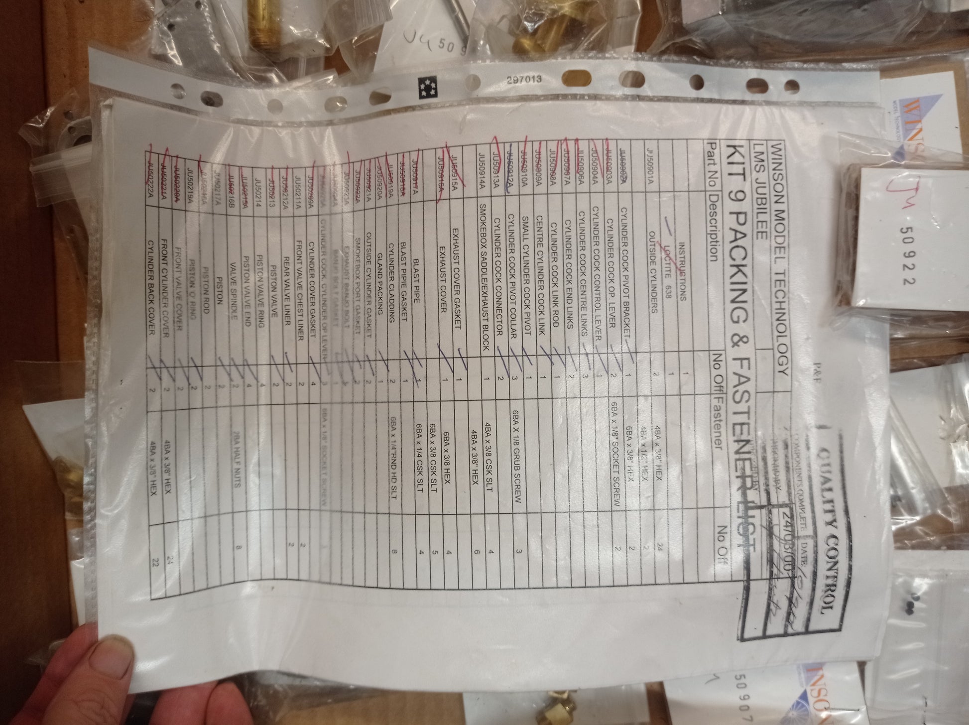Kit 9 for a 5" gauge Jubilee as supplied by Winson - cylinders and assorted parts (pistons and valves, drain cocks etc).