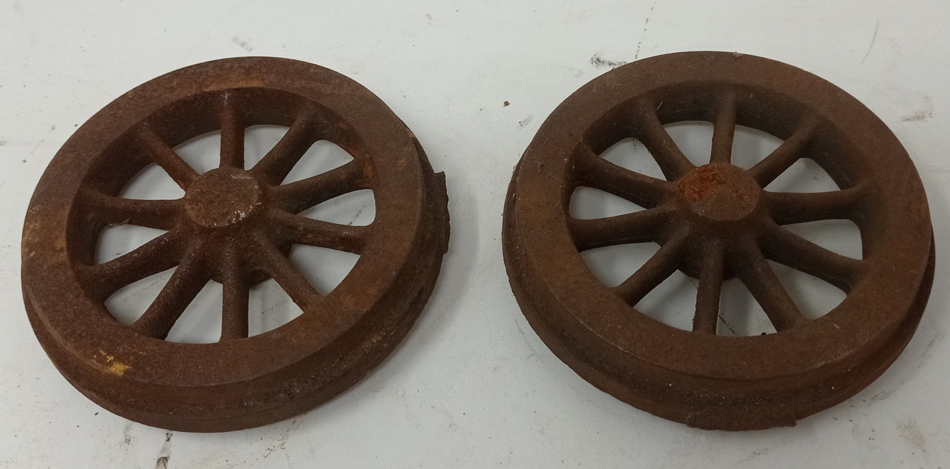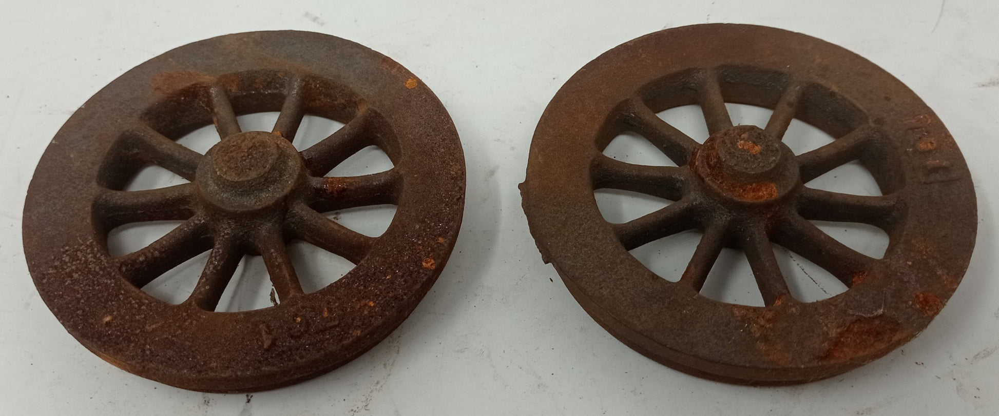 Two unmachined cast iron wheels, suitable for 5" gauge