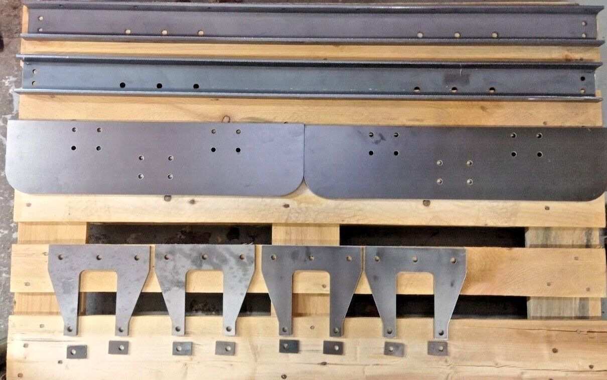 Constructed from folded steel channel with W Irons. All parts are laser cut with holes for simple bolt together construction. The W Irons will take standard take up bearings with a 3" slot
