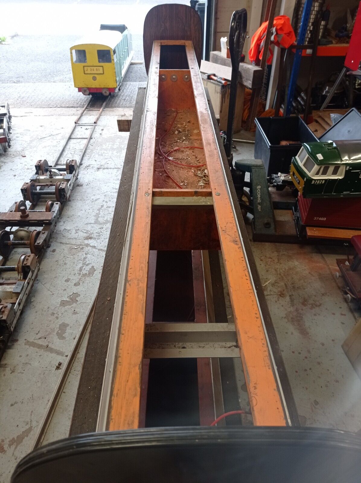 A pair of Cromar White sit astride coaches, built for the railway at Somerleyton Hall in Norfolk. Last used there around 20 years ago, they have been in store since.